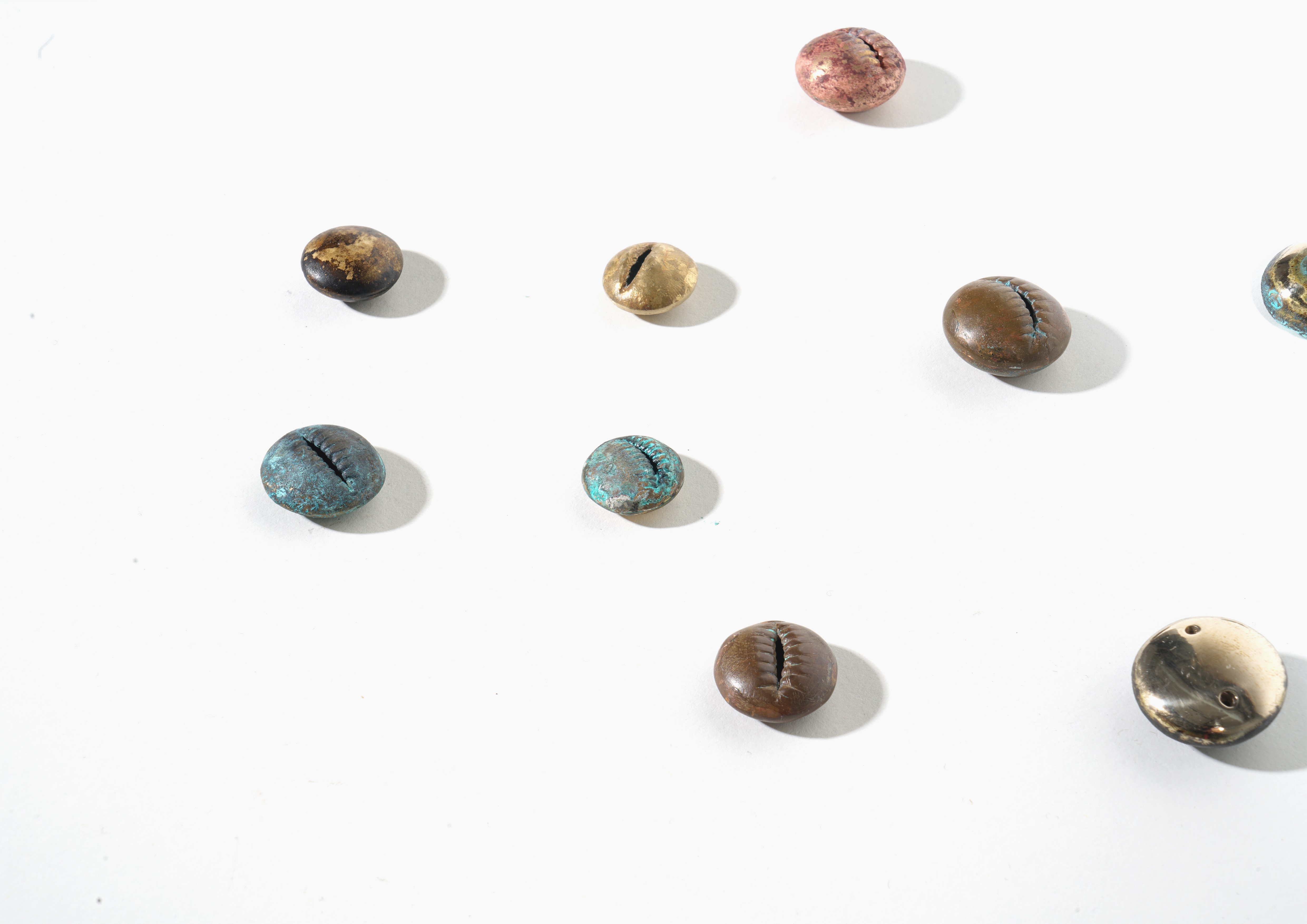 Full moon brought bigger tide, and tides brought shells to the shore, those shells were the original money. Thousands of years later, the coins are still golden and round, do they remind you of the full moon? With these objects, whose forms stray between the moon, coins and shells, I try to trace the potential connection between original jewellery, wealth and the operation of the earth and the universe.