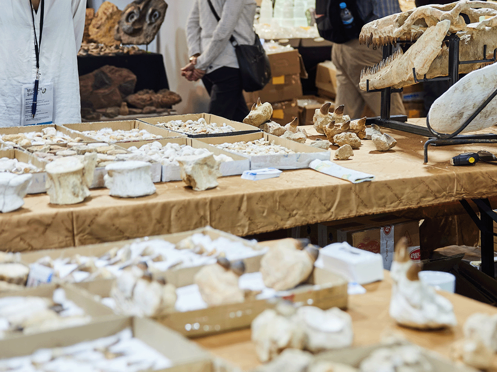 This year, many companies that were unable to participate in previous years due to space limitations are back in Munich. Visitors can look forward to ammonites of all sizes and qualities, shark teeth, and delicate trilobites in collector quality from Morocco, one of the most fossil-rich regions on Earth. From Madagascar, known for its rich mineralogical treasures, traders bring raw stones, semi-precious stones, and decorative objects to Munich. For those who appreciate impressive quartz crystals and amethysts, a visit to the wholesalers from Brazil or Uruguay is highly recommended.